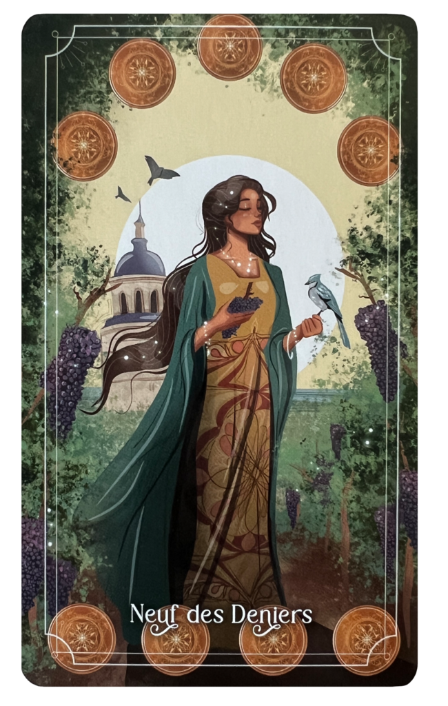 Die Neun der Münzen spricht von Selbstwert und innerer Unabhängigkeit.
